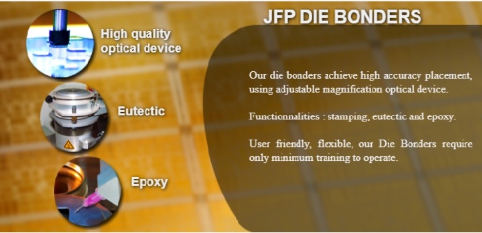 Our die bonders achieve high accuracy placement, using adjustable magnification optical device. ur die bonders achieve high accuracy placement, using adjustable magnification optical device.